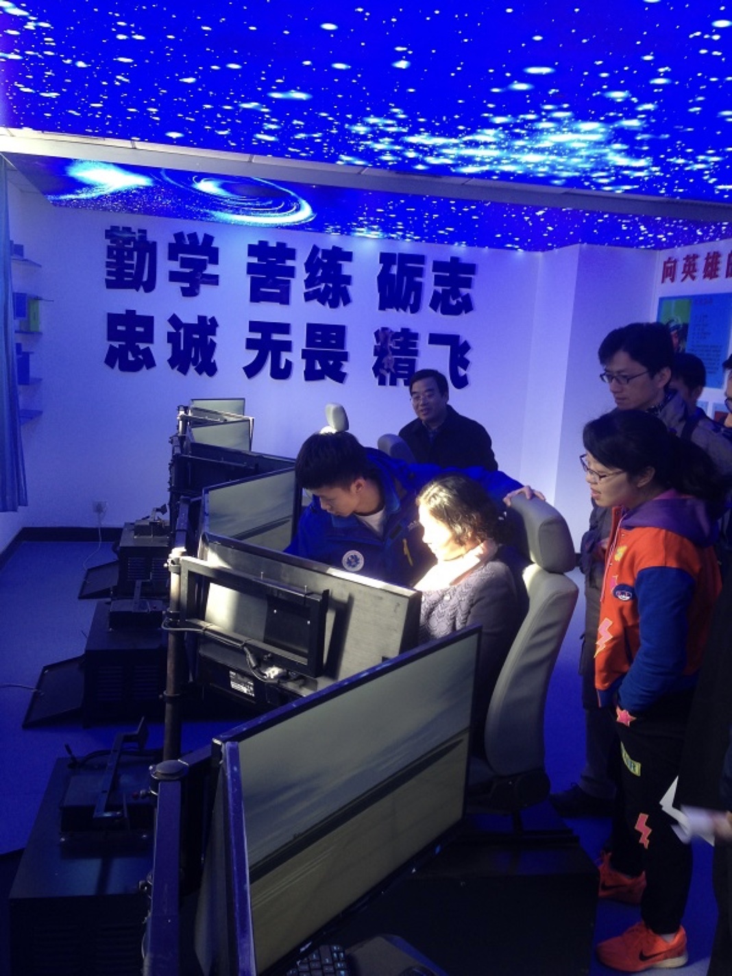 第二天,老师们在西安中学领导的带领下再次来到校园,参观了生物标本馆、陶艺博物馆、校史馆、心理咨询活动室、航空班教室和模拟飞行训练室,对西安中学有了更加全面深入的了解。随后,两所学校的领导、老师举行了座谈会,会上西安中学的雷副校长、教务处杨主任、学工处丁主任、航空班班主任从不同方面介绍了西安中学青少年航校的情况,我校党办主任王晓莺在交流中称赞“西安中学用心办航校,很多方面值得我们学习借鉴”,我校2015级航空班班主任周斌老师对许多具体问题提出疑问和发表看法。在双方的交流探讨中,大家都感受到了在青少年航校这一新生事物的发展过程中有很多的共性问题,每个学校都在结合自己的地域特色和学校特色积极探索,各校必须排除万难,携手共进。