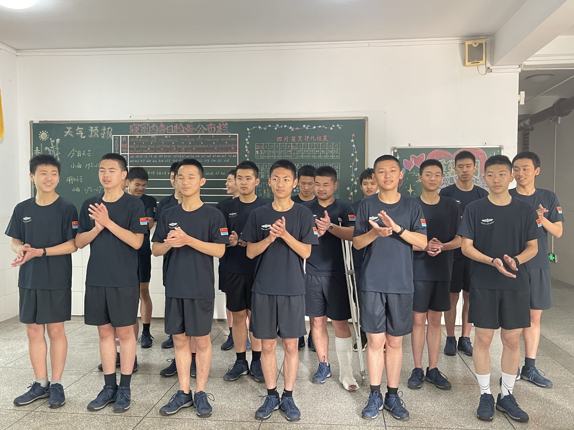为培养青航校学员的服从意识、自律能力,从起床、内务到就寝,宿舍管理严格约束。宿管老师坚守自己的岗位,总是以无微不至的关怀为同学们营造良好的寝室氛围。今天,同学们满怀对宿管“妈妈”的感激,向日夜辛勤操劳的宿管老师们献上一首《强军战歌》——“听吧新征程号角吹响,强军目标召唤在前方......”班长指挥坚定有力,班上不慎扭伤的同学也拄着双拐整齐列队,同学们洪亮的歌声响彻大厅。