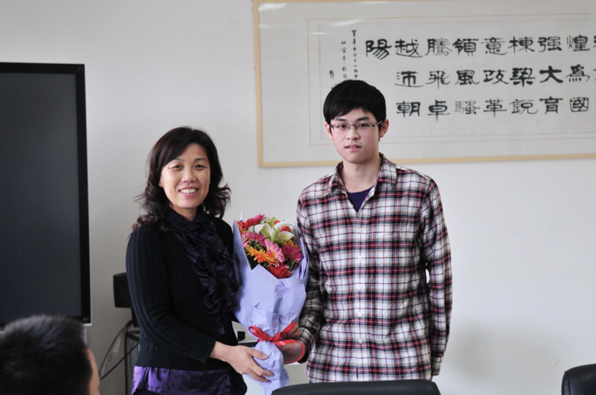 2011年5月27日,我校2010届优秀校友文豪回到母校,感谢学校和老师,并与我校高一年级国际留学班的同学进行了交流。张真校长、赵丽副校长、外事处江兴隆主任参加了当天的座谈会。