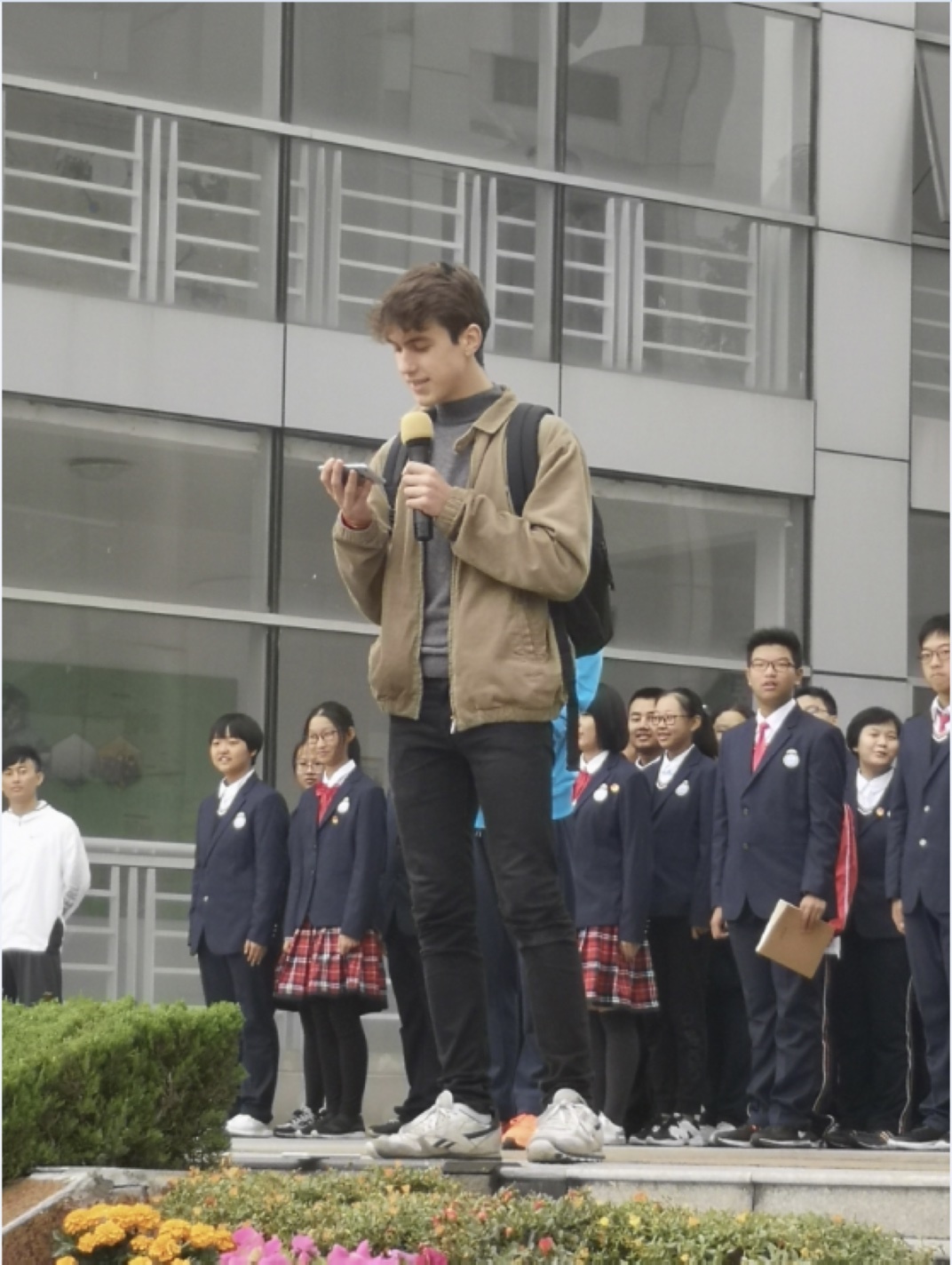 (法国学生代表参加升旗仪式)