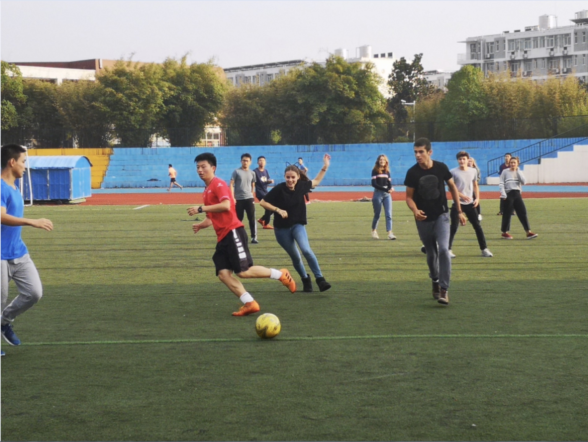 在校期间,法国同学们充分体验了中国高中生的日常生活。为了让法国的同学们更好的体验中国传统文化,学校特意为他们安排了李克全老师的国画课和于猛老师的武术课。让客人们充分体验了华师一附中的中国传统文化教育。期间还与我校同学一起踢了一场足球友谊赛。