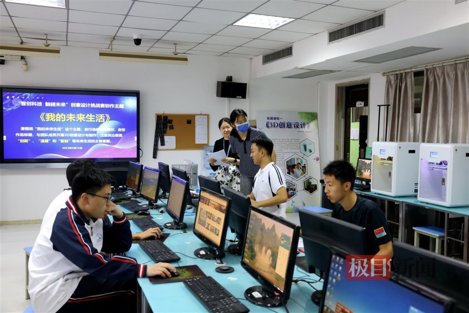 16日,在华师一附中3D打印“创意空间”教室里,同学们正热火朝天地进行创意设计挑战大赛。极目新闻记者了解到,该项比赛围绕“我的未来生活”这个主题,与团队成员开展3D创意设计与制作,比赛将现场决出两个一等奖,一个是设计类一等奖,考验孩子们天马行空的想象力,一个是打印类一等奖,考验学生们的实际操作能力。