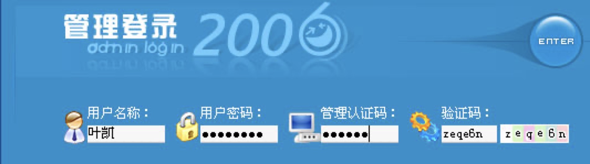 1、点击页面最下方的管理登录,输入用户名、密码、管理认证码和验证码,不知道管理认证码的请联系系统管理员张战胜老师。点击ENTER进入管理后台。