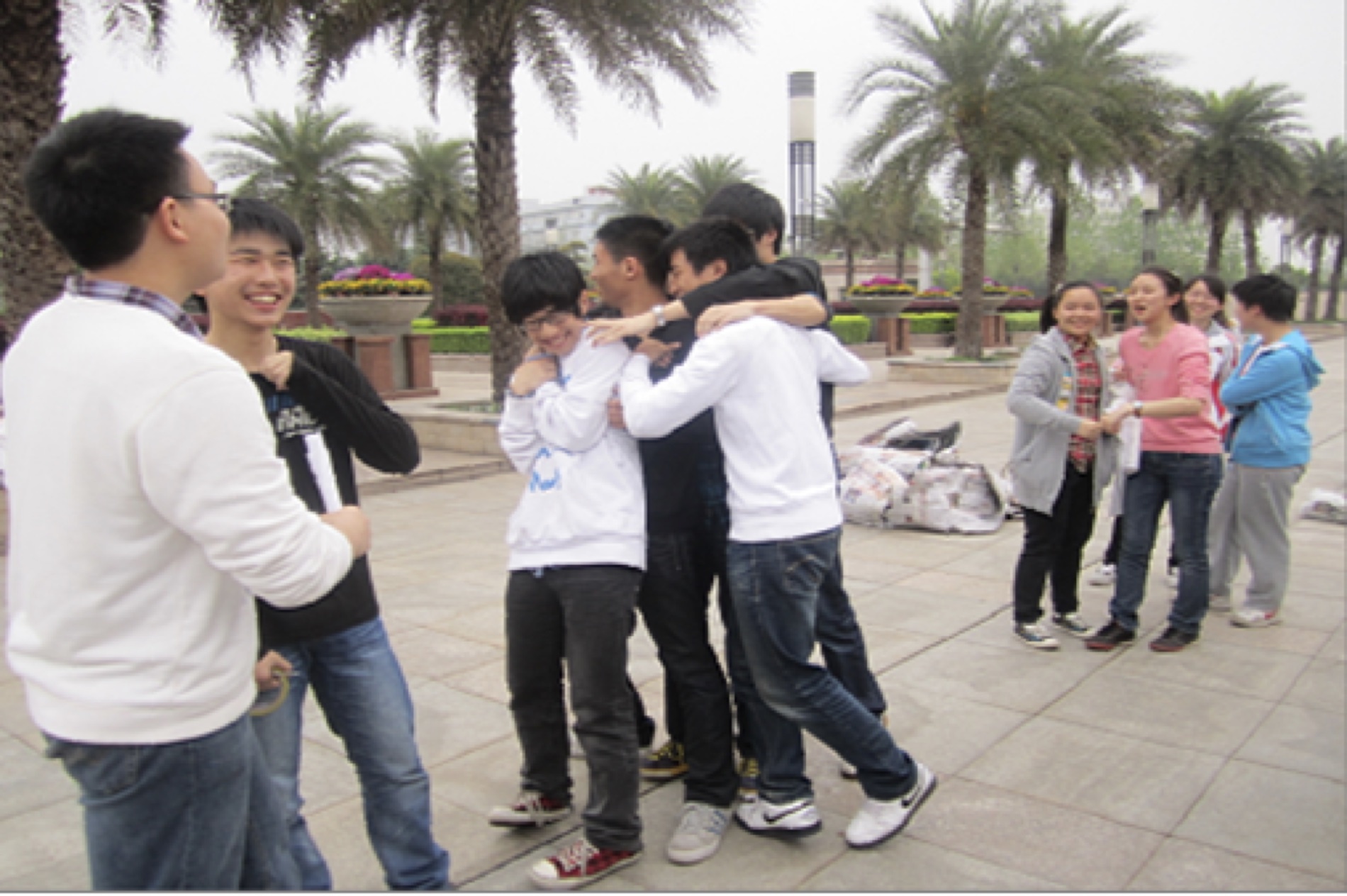 (互相拥抱,增加友情)