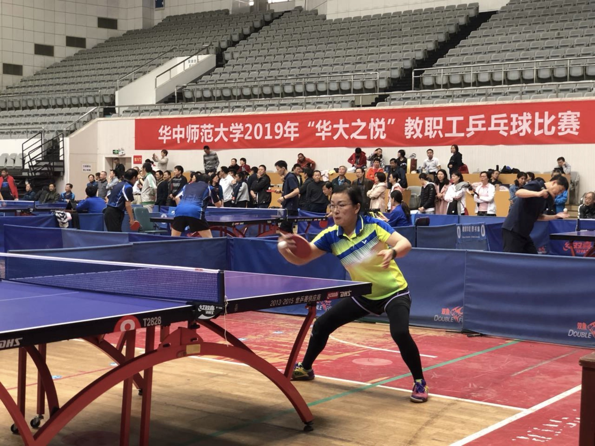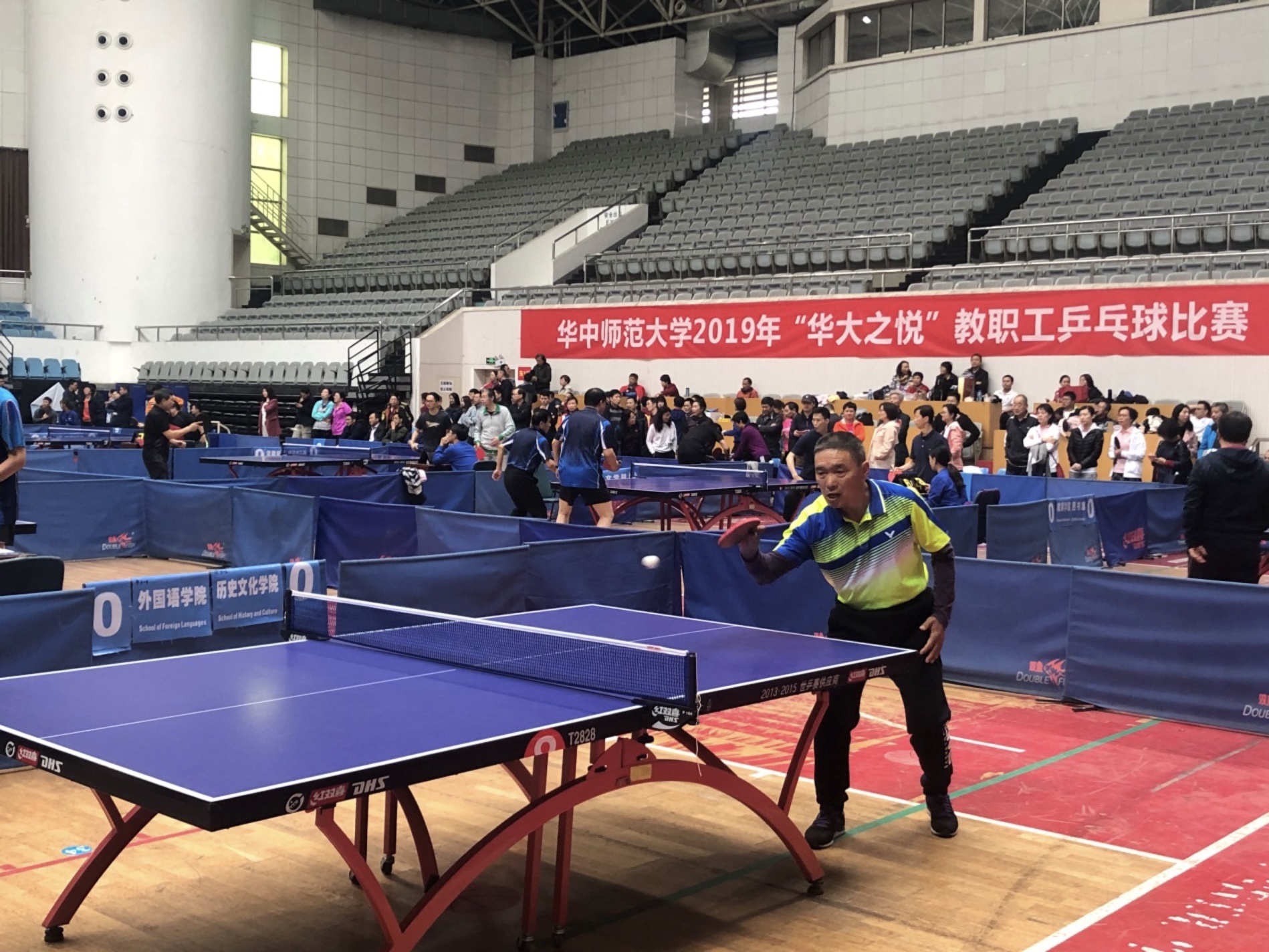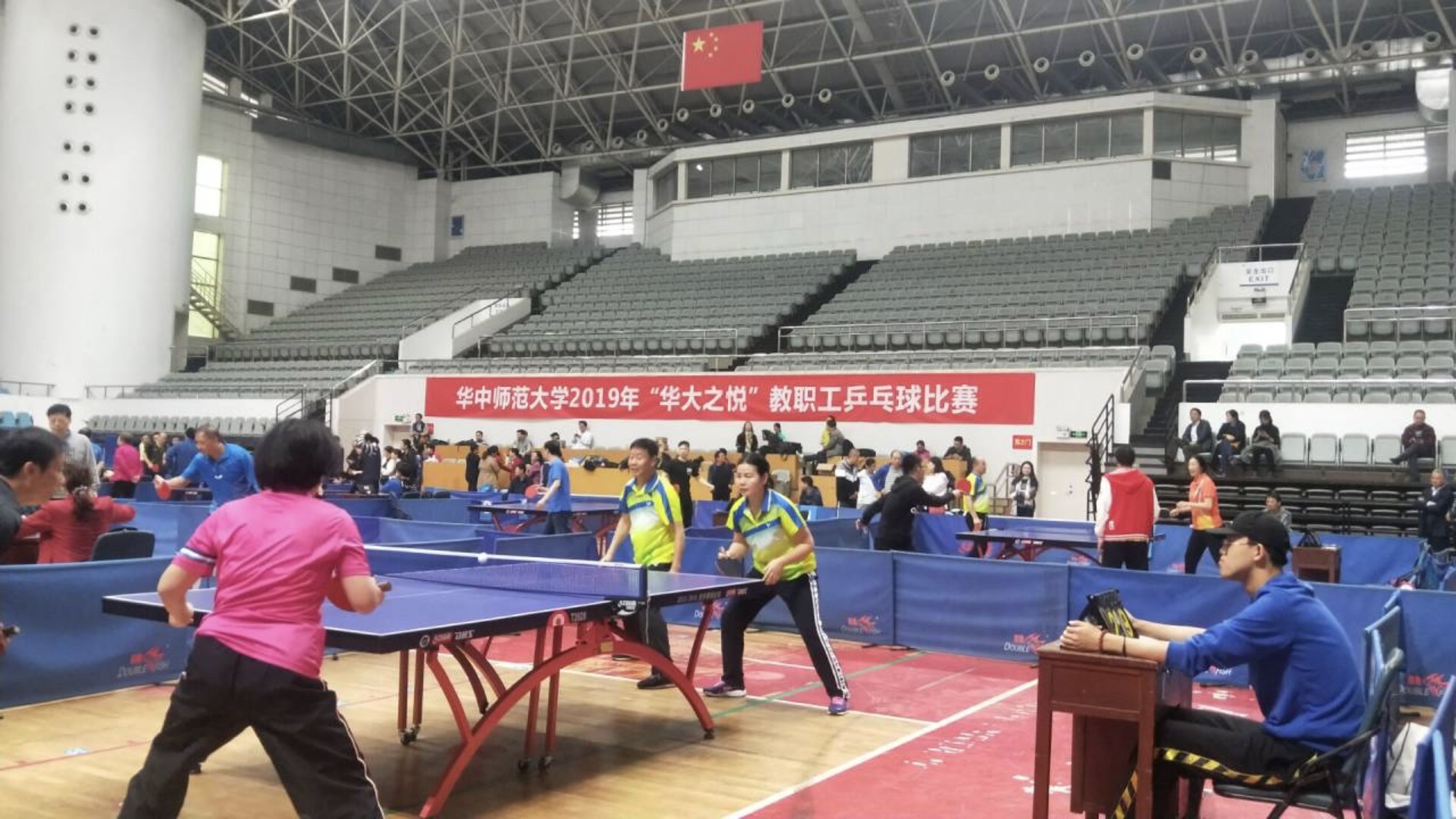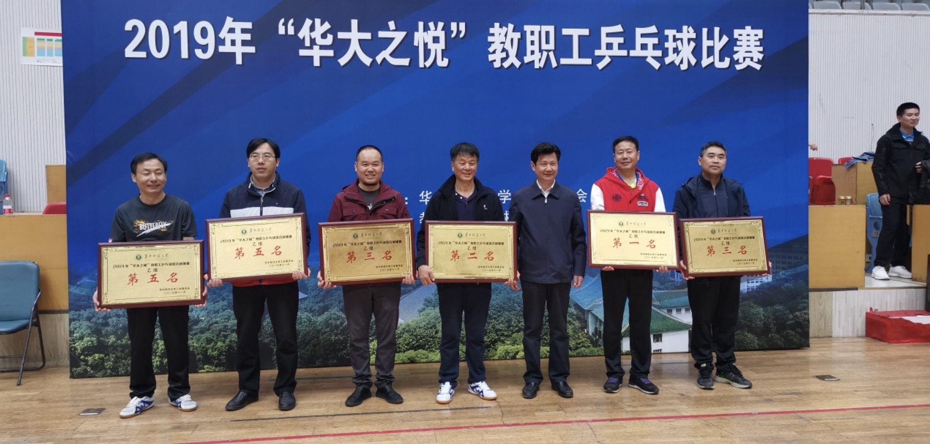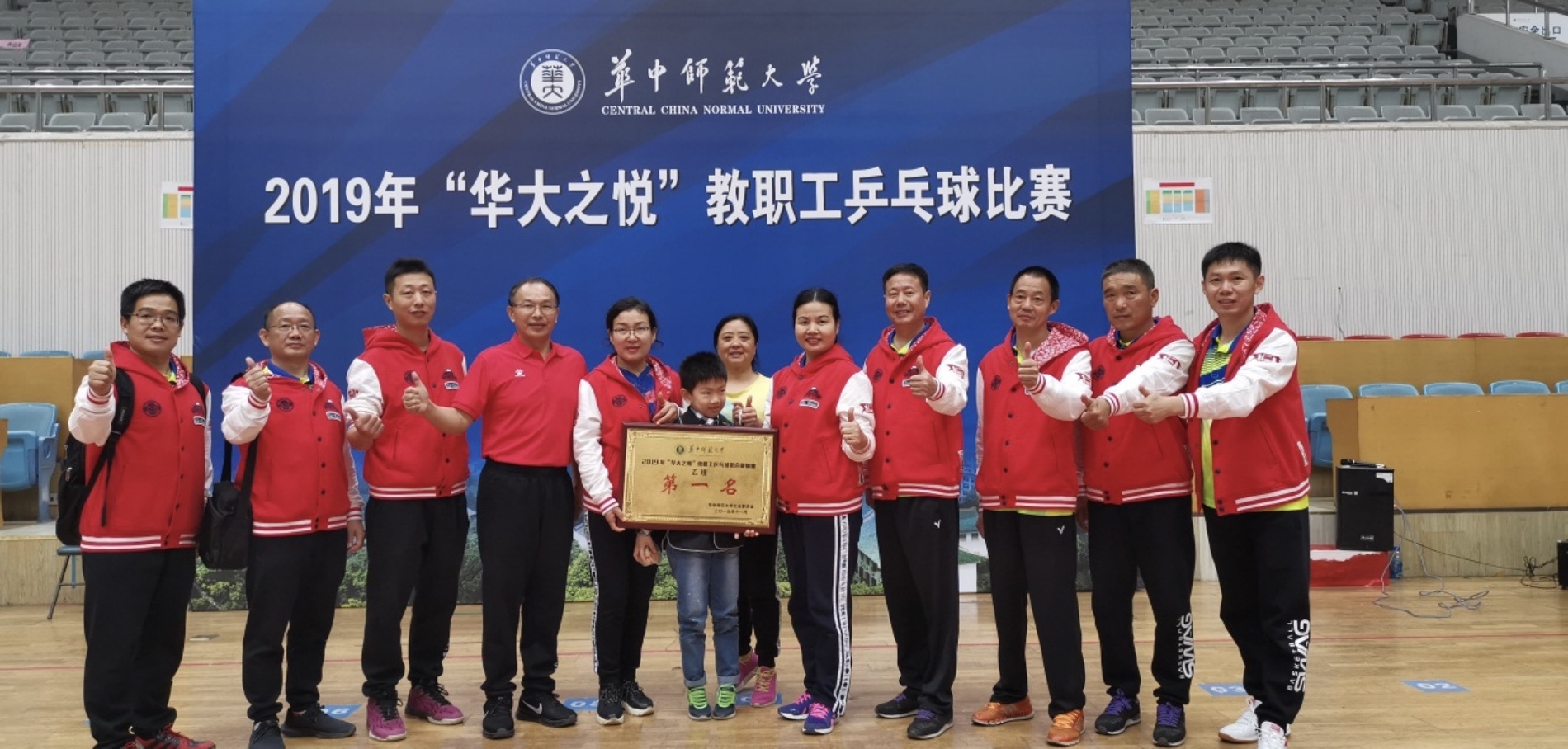 2019年华中师大教职工乒乓球团体比赛于11月16日至17日在华中师大佑铭体育馆隆重举行,我校教工乒乓球队在乙组混合团体比赛中,齐心协力、合理布阵、顽强拼搏,最终取得乙组团体冠军的优异成绩。华中师大赵凌云校长为获奖单位球队颁奖。