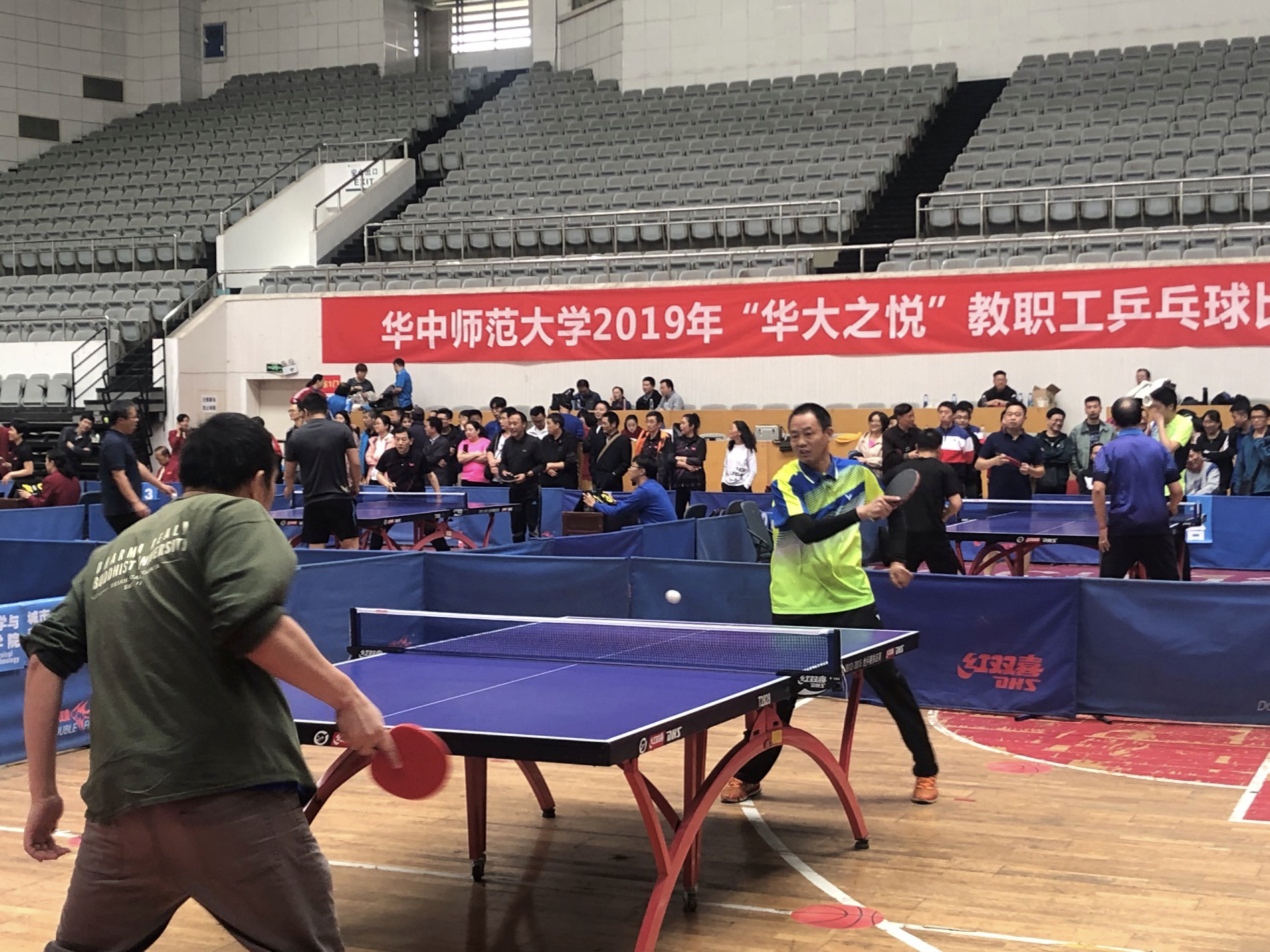 去年华中师大教职工乒乓球比赛,我校乒乓球队本是上届甲组团体第四名的种子球队,但因多名主力队员出差、生病等原因缺席比赛,成绩欠佳降级到乙组。今年这届比赛,校工会王晓莺主席高度重视大力支持,校乒乓球队各位队员克服工作繁忙、身体不适多方面困难,振奋精神、认真训练,在比赛中敢打敢拼,取得了6场比赛全胜的赛绩,体现了华师一附中教职工浓厚的集体主义精神和奋勇拼搏、追求卓越的精神。