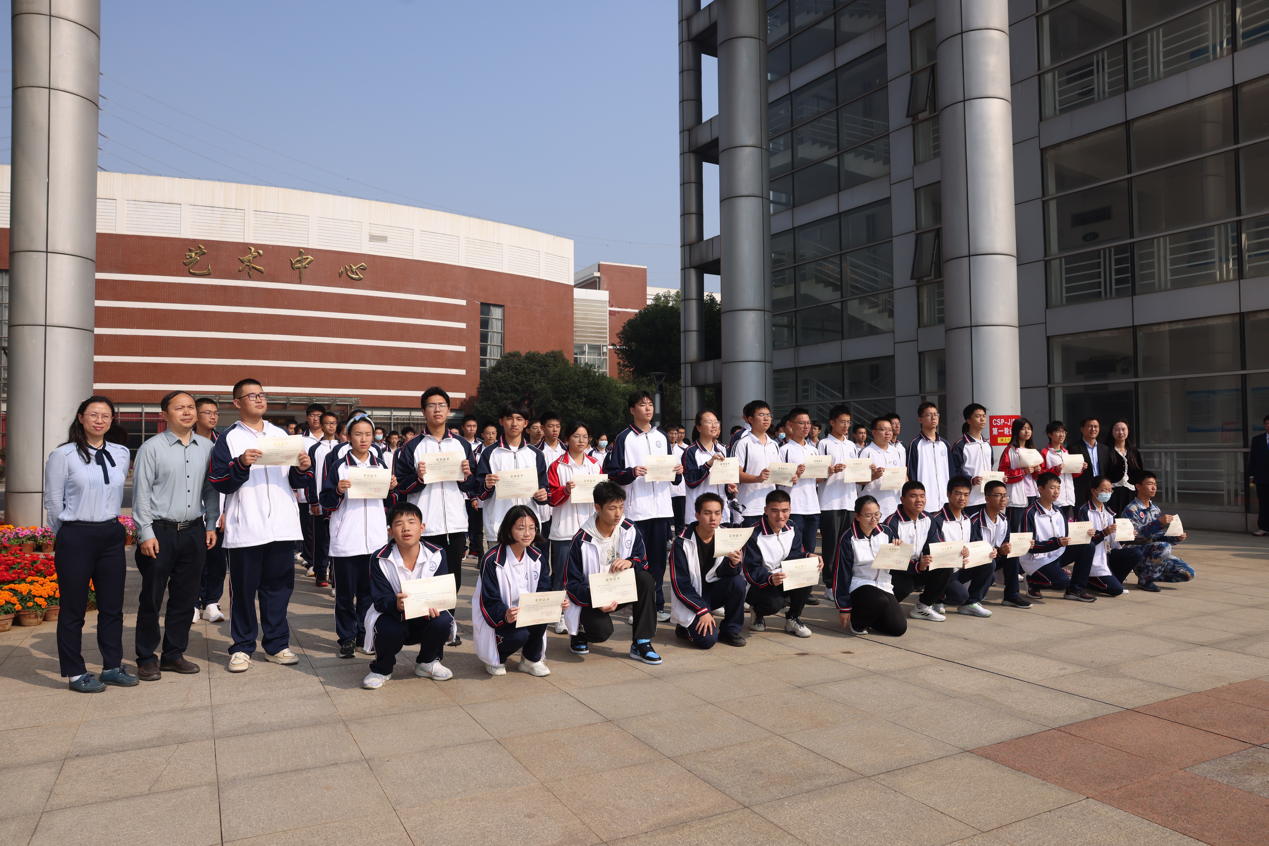 10月30日的升旗仪式,艳阳高照的主席台上,由甘祥生副校长、乐晓峰主任、沈胜方主任、团委屈哲书记为获奖选手颁奖。